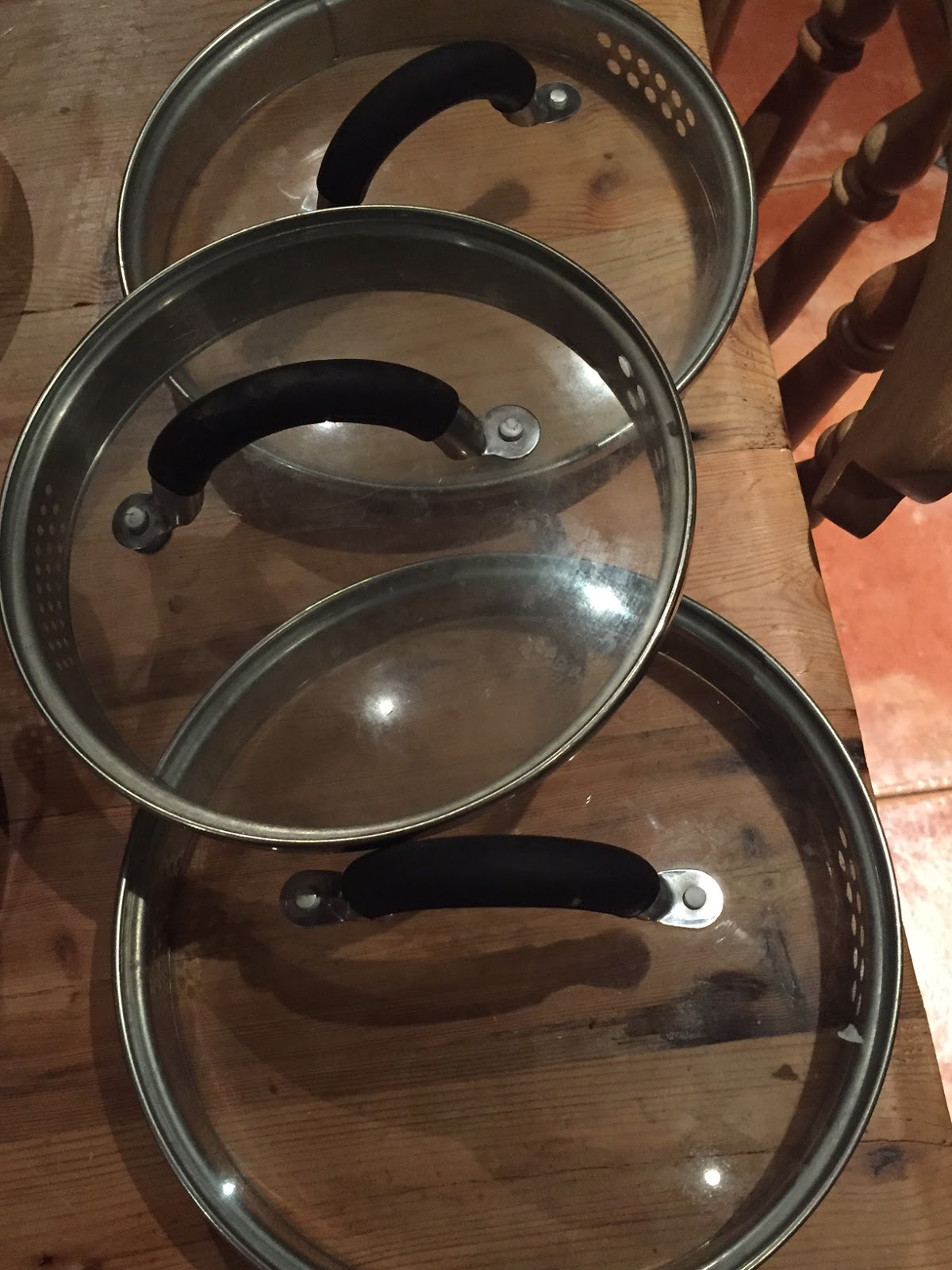 Finally, a thought for you. When people die it is often their pets that get left behind, probably feeling as much pain as close friends and family. I think it must be the same for pan lids. Sally has burnt countless pans, but rarely the lid as well. No, those unfortunate ceramic or glass “hats” remain in a drawer like little orphaned children. Now, you may think that I am exaggerating, but as you can see below our particular drawer is overflowing with sad and lonely pieces.