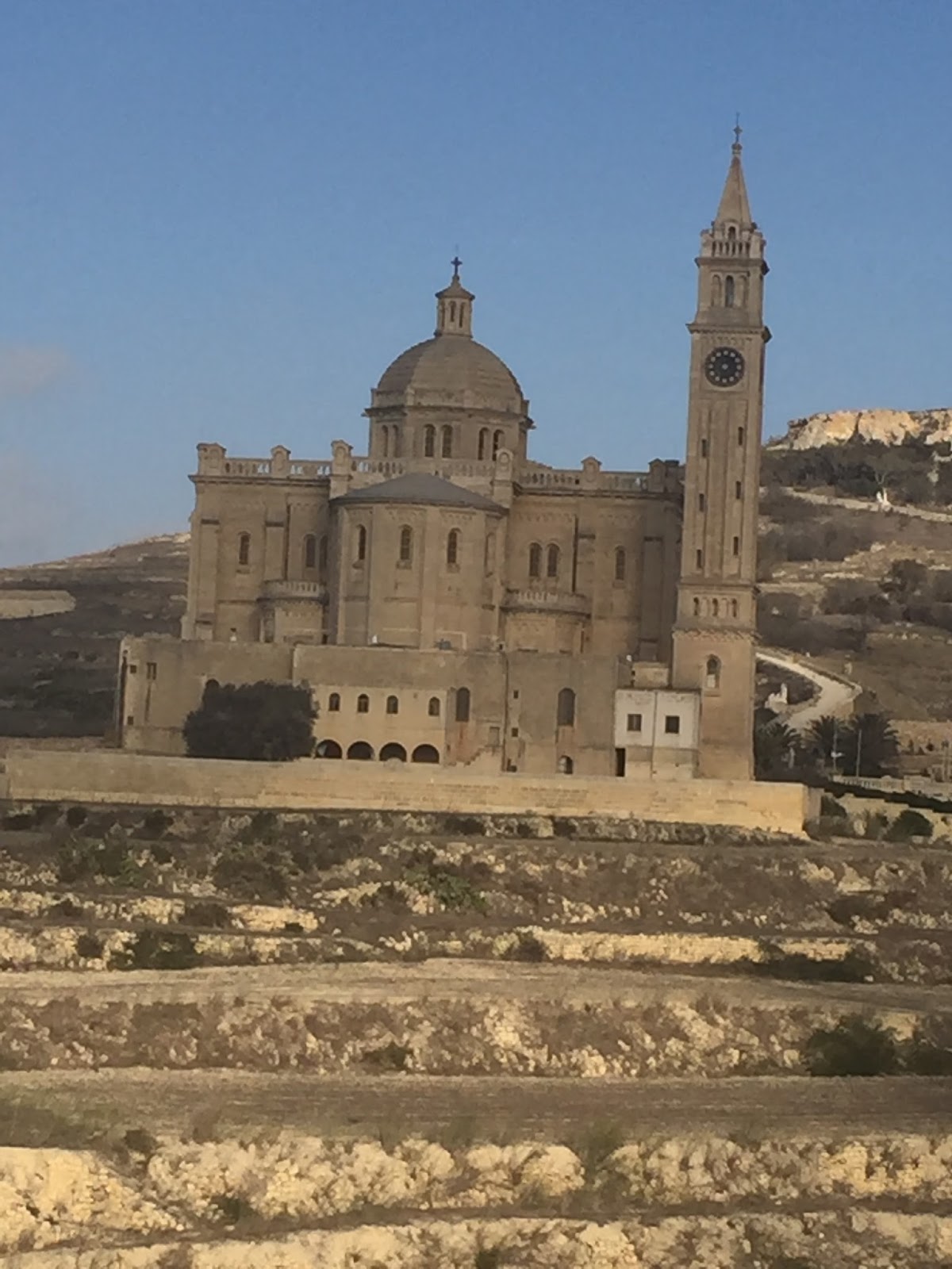 We drove into the capital, Victoria, which was about 10 minutes away, and stocked up on provisions, then returned to get the all important WIFI working. Its always tricky trying to read the the labels on foreign products, and that probably explains why I spent five minutes trying to get the shampoo to lather up after Sally accidentally purchased conditioner. We had wonderful views across to the sea, and to the rear of the building there was the historic shrine of Ta Pinu. We actually managed to walk there one day, but Sally was inappropriately dressed to gain entry.