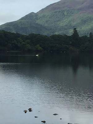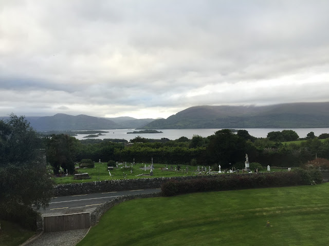 After a week’s holiday wth the kids there is nothing better than getting away from it all for a few more days, so Sally and I headed for Killarney. We flew into Cork and picked up a rental car, then drove the 50odd miles to Aghadoe Heights. This hotel is not much to look at from the outside, but the service is second to none and the views are spectacular. A wedding had booked out the whole hotel the day after we arrived, so they put us in a room furthest away from where the noise was likely to be, which turned out to be a luxurious suite. We had a nice surprise on arrival as a colleague of mine had left a gift for either a bet at the races or a drink. She was here a week or so earlier, as many of her family are buried in the graveyard across the road from the hotel. And as it turned out, our room overlooked the cemetery, and the lake beyond.