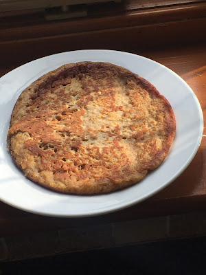 Another successful experiment came in the shape of pumpkin pancakes. It always amuses me that people get excited by Halloween and pumpkin season, then post recipes stipulating canned pumpkin. These were definitely made with fresh pumpkin, and they were delicious.