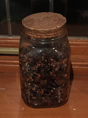 There have been a few experiments in the kitchen, including chicken, pasta, bacon and spinach in a creamy sauce, and praline cake which is very, very hazelnutty. At first I thought that this was a healthy alternative to other chocolate cakes, but it isn’t really! Although it contains no flour or butter, it does contain whipped cream, dark chocolate, and rather a lot of Nutella. I also started Christmas preparations with Creole cake. The fruit was steeped in alcohol for week and then the cake was baked. This week I gave it its first feed, with numerous injections of brandy. Next week it will be port, then rum, then whatever comes to hand!