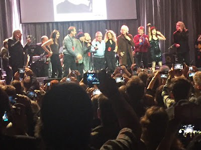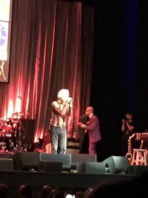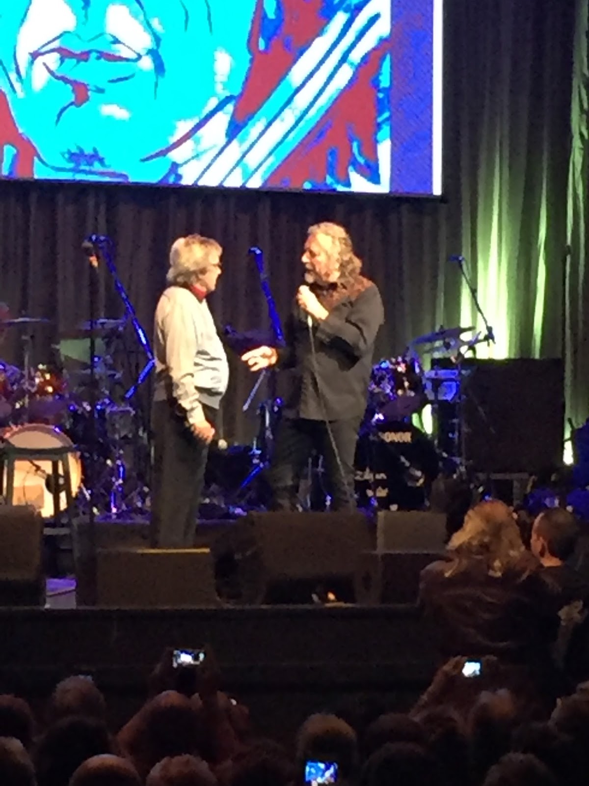 Next stop was the Indigo, which was a short walk from the hotel. This is a great theatre with spacious seating, generous walkways without bouncers telling you to sit down, and an expansive bar at the back that was open throughout the show. The backdrop to the stage showed pictures of Bill Wyman throughout his childhood and his career. As showtime approached this was replaced by a huge white screen containing a quote on rock and roll and music in general from Brian Jones. ‘Do you think he will be appearing?’ Sally asked. ‘I wouldn’t have thought so,’ I replied. ‘He died in 1969.’ The show itself was fabulous, except for Mark Knopfler. I’ve never been his biggest fan, and when he launched into a 5 minute dirge at the start of the evening it didn’t augur well for the rest of the event. However, I needn’t have been concerned. Van Morrison was brilliant, as were Martin Taylor, Andy Fairweather-Low, Robert Plant and, surprisingly, Mick Hucknall and Bob Geldof. For me the star of the show was Imelda May who belted out a couple of numbers before joining Robert Plant for the finale.